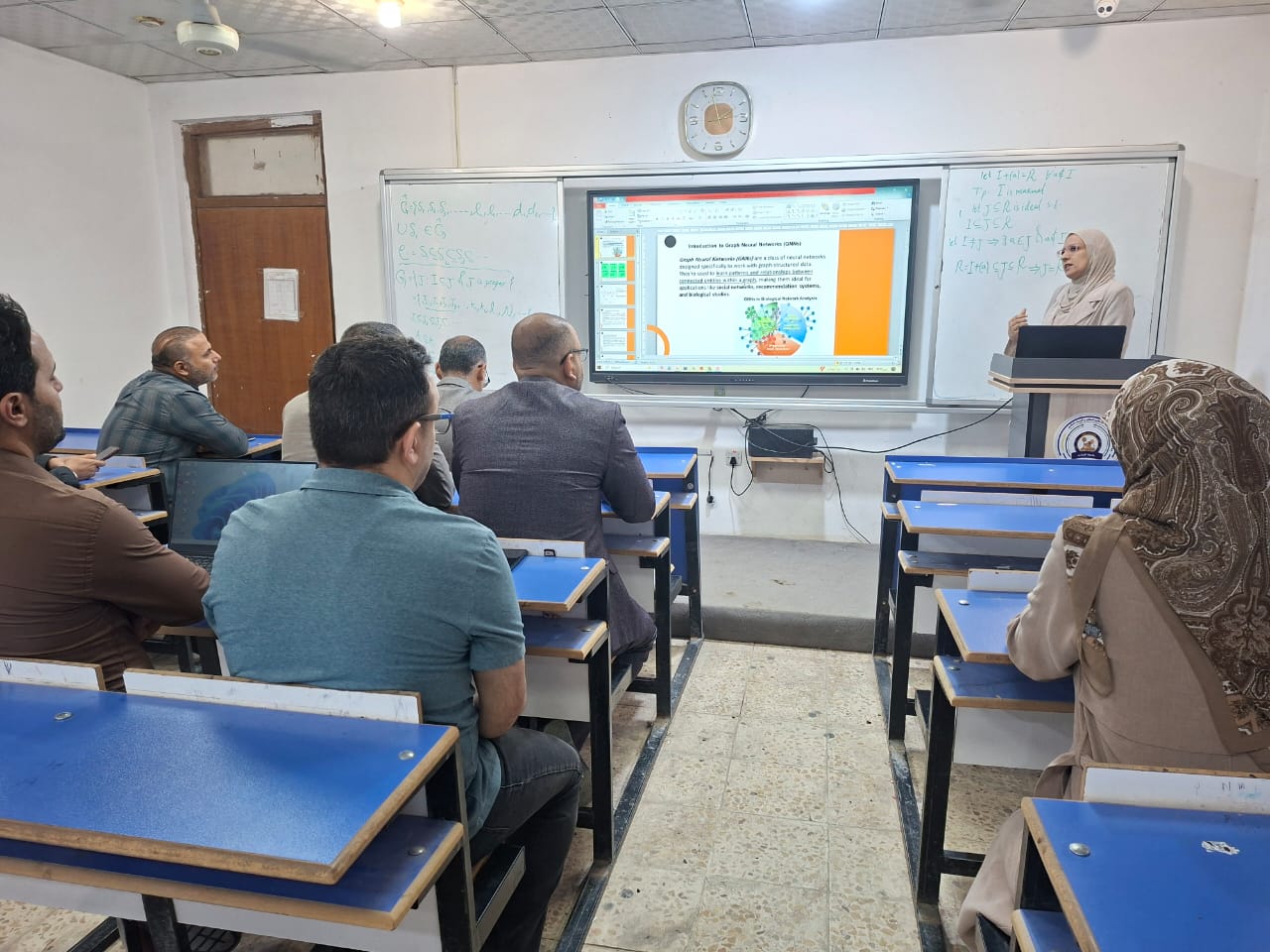 برعاية الأستاذ الدكتور خولة كَاني جاسم، عميد كلية العلوم في جامعة المثنى، أقام قسم الرياضيات وتطبيقات الحاسوب يوم الثلاثاء الموافق ٤ / ١١ / ٢٠٢٥ حلقة نقاشية بعنوان ( الشبكات العصبية البيانية في تحليل البيانات ) ، وذلك ضمن فعالياته العلمية والثقافية للعام الدراسي ٢٠٢٥ / ٢٠٢٦.