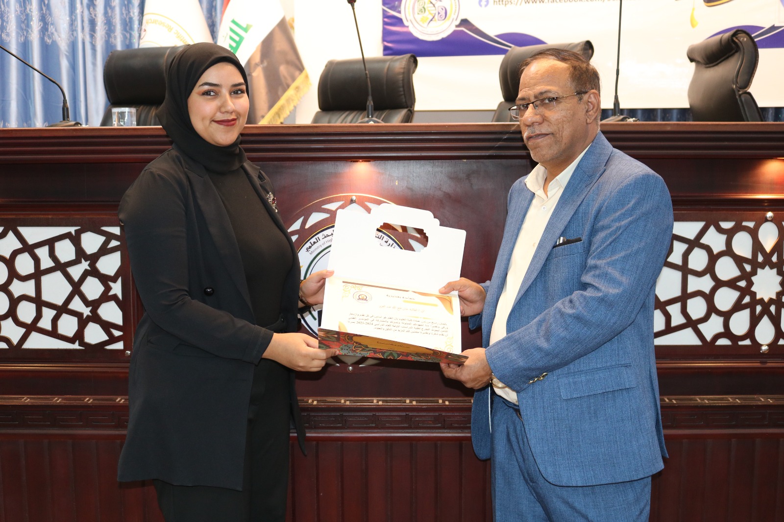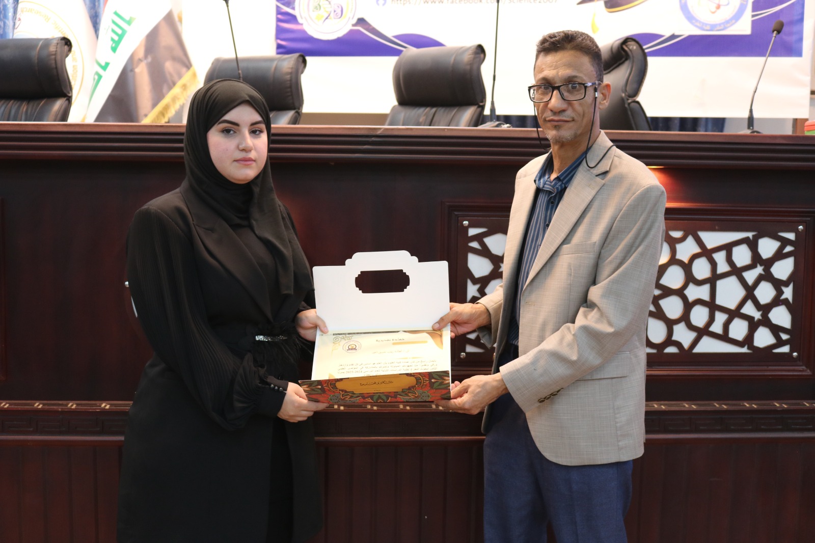 وفي كلمة خلال افتتاح المؤتمر، أكدت الأستاذ الدكتور خولة كاني جاسم عميد الكلية على أهمية دعم بحوث الطلبة ، واصفًة إياها بأنها نواة للابتكار العلمي ومؤشر على جودة التعليم العالي، مشيدةً بجهود الكلية في تنظيم هذا المحفل العلمي السنوي ، وعبّرت عن فخرها بالمستوى العلمي الذي قدمه الطلبة ، مؤكدة أن مثل هذه المؤتمرات تسهم في صقل المهارات البحثية وتعزيز روح الابتكار والمبادرة لدى الطلبة . وفي ختام المؤتمر تم توزيع الدروع على الطلبة الفائزين بالمراكز الأولى من قبل عميد الكلية ، بالإضافة إلى منح شهادات تقديرية لجميع الطلبة المشاركين من قبل معاوني العميد للشؤون العلمية والادارية ، تقديرًا لجهودهم العلمية ومساهماتهم البحثية .