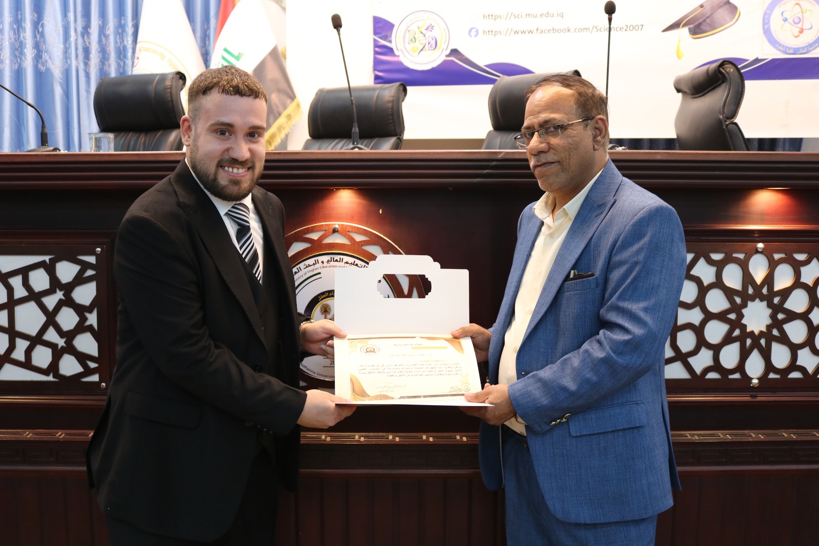 وبحضور ، الأستاذ الدكتور علي موسى رشيد مساعد رئيس الجامعة للشؤون العلمية ، والأستاذ الدكتور حسن هادي شروم مساعد رئيس الجامعة للشؤون الإدارية . نظّمت كلية العلوم يوم الاثنين الموافق 26/5/2025 مؤتمرها السنوي الثامن لبحوث التخرج لطلبة الدراسات الأولية ، وذلك على قاعة الكلية المركزية ، وسط حضور أكاديمي واسع ومشاركة فعّالة من الطلبة والكادر التدريسي