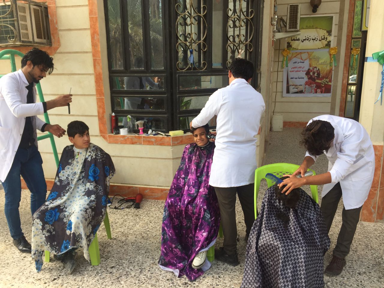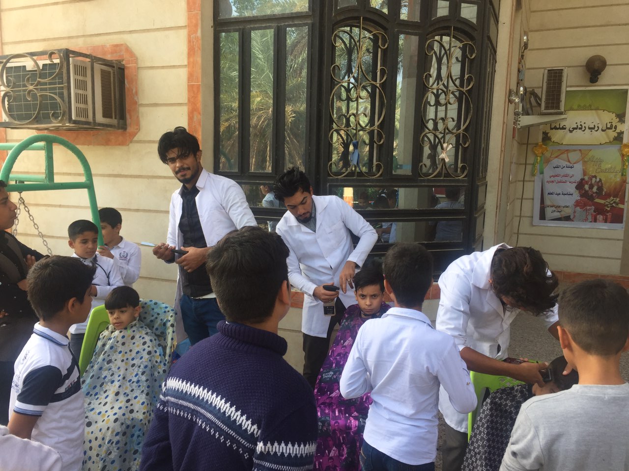 مساهمة مجتمعية حلاقة طلبة المدارس من قبل طلبة قسم الفيزياء