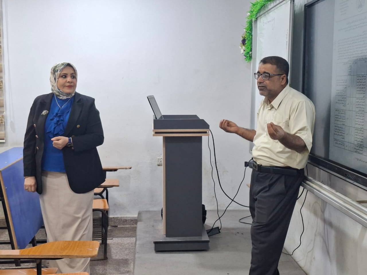حاضر في الورشة كلٌّ من الأستاذ الدكتور أزل شاكر وهيب، والمدرّس صالح عبيد لزام، حيث تناولت المحاور الآتية: